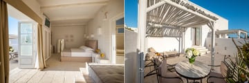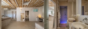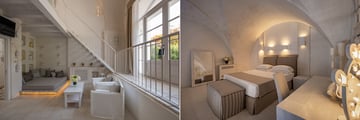 Surrounded by ancient olive groves and positioned between the breathtaking waters of Baia dei Turchi and the shimmering Alimini Piccolo lake, the resort blends rustic charm with understated luxury. Guests are welcomed into spacious rooms and suites characterised by stone arches, soft natural tones and a soothing sense of space that reflects the beauty of the surrounding landscapes.