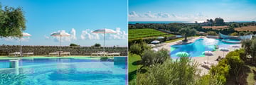 The resort blends the rustic warmth of a traditional Masseria with understated elegance, offering spacious rooms and suites with private terraces that invite guests to linger in the soft Italian sunlight.
